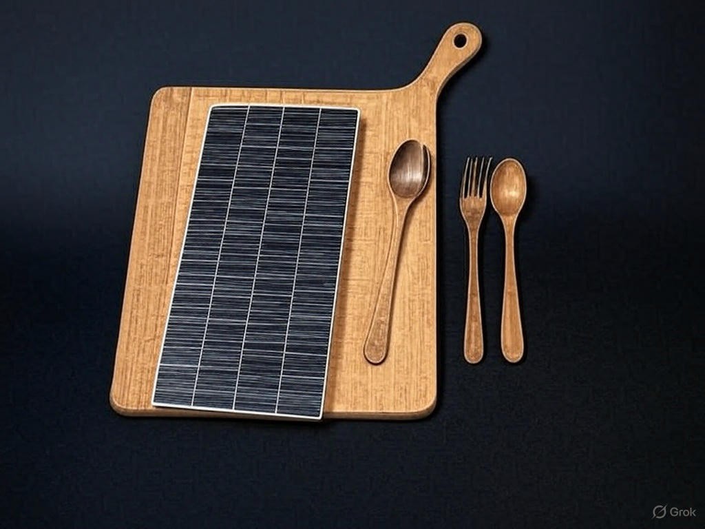 Conjunto de cubiertos, utilizados con materiales sostenibles